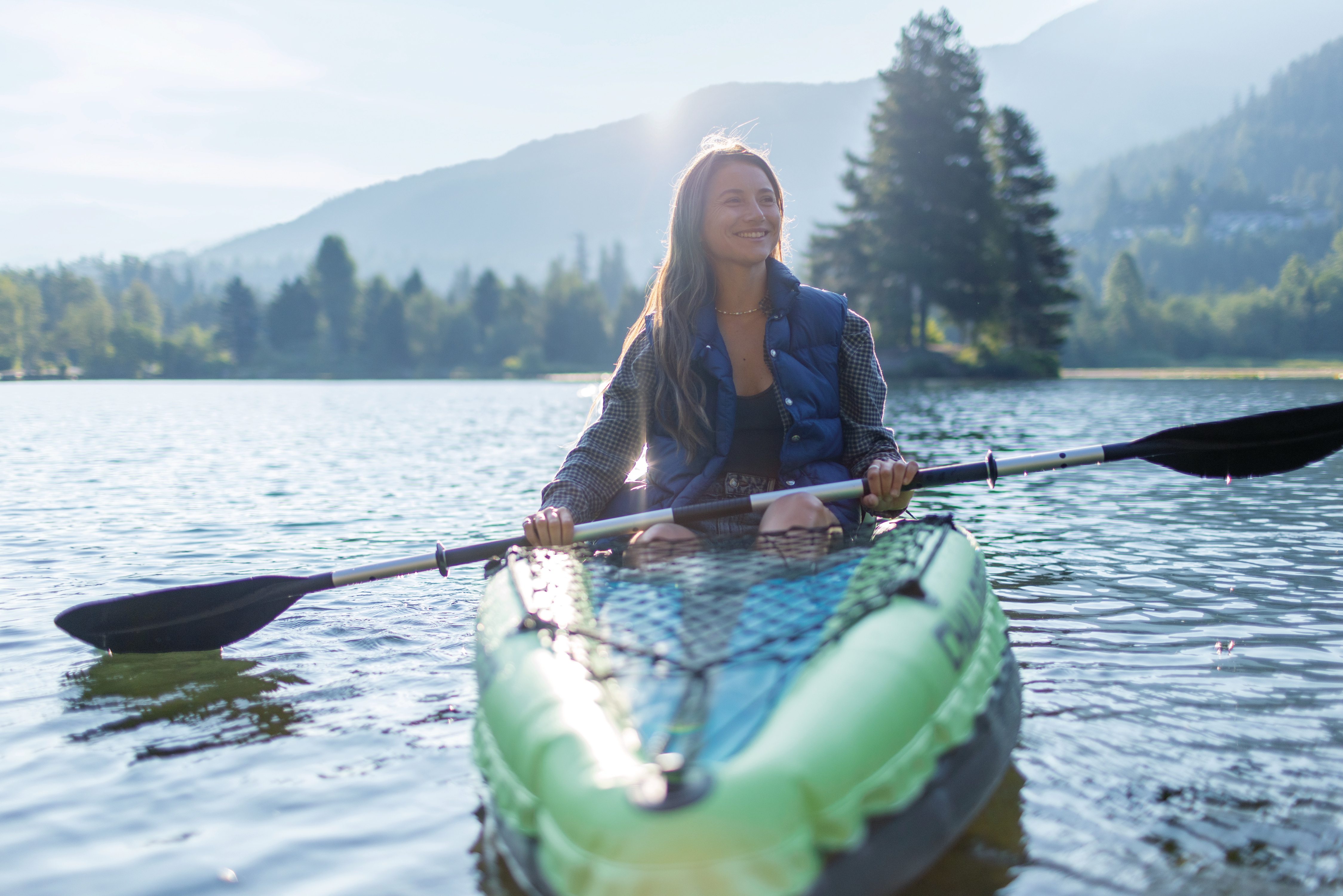 The Intex Challenger™ K1 Kayak is sporty and fun with a streamlined design for easy paddling. The bright green color and sporty graphics make the kayak highly visible in the water. Great for experiencing lakes and mild rivers solo, this Sports Series kayak is perfect for one adult. Lightweight and compact, this kayak is very easy to assemble and, with the Boston valve, it inflates and deflates in minutes. You can take the fun of kayaking wherever you go.
