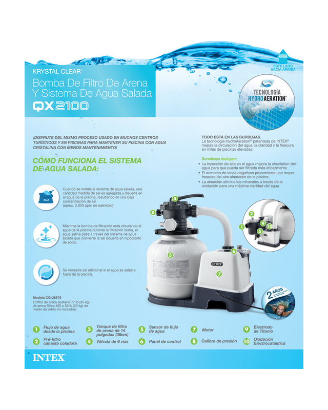 - Hydro Aeration® Technology provides improved circulation and filtration, improved water clarity, and increased negative ions at the water surface